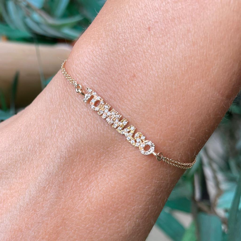 Bracciale con scritta o simbolo in oro 18kt e diamanti