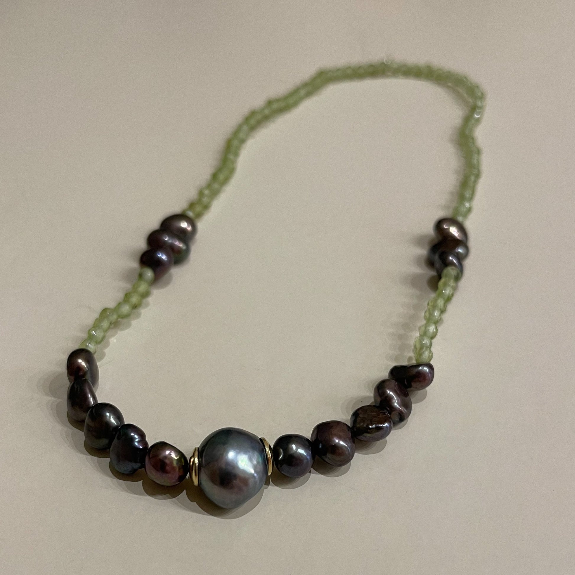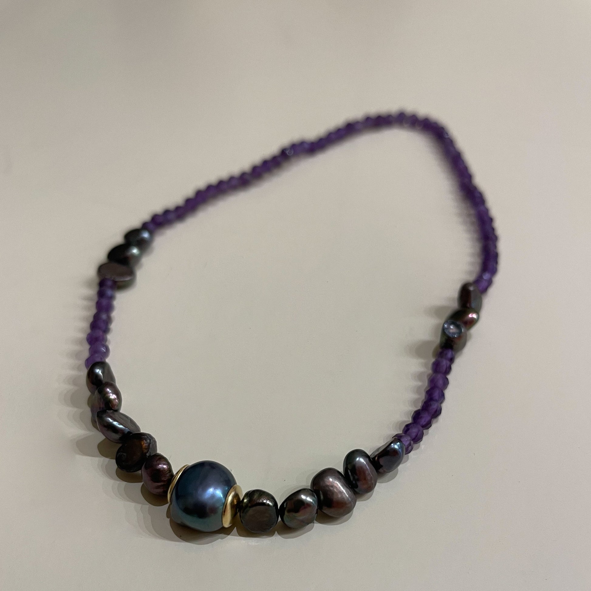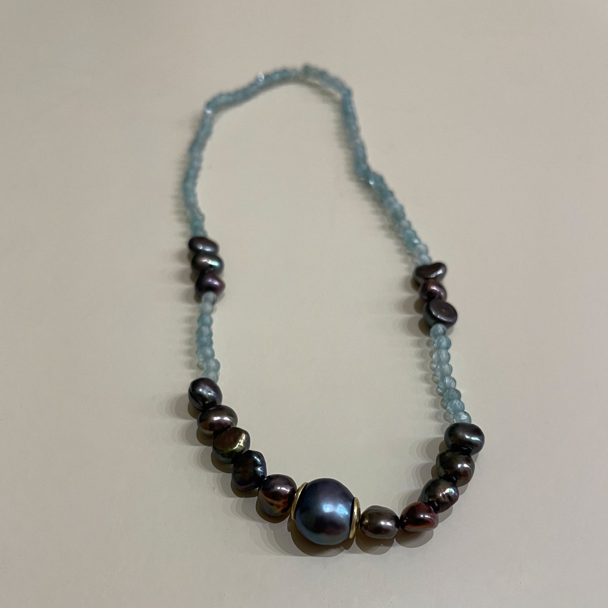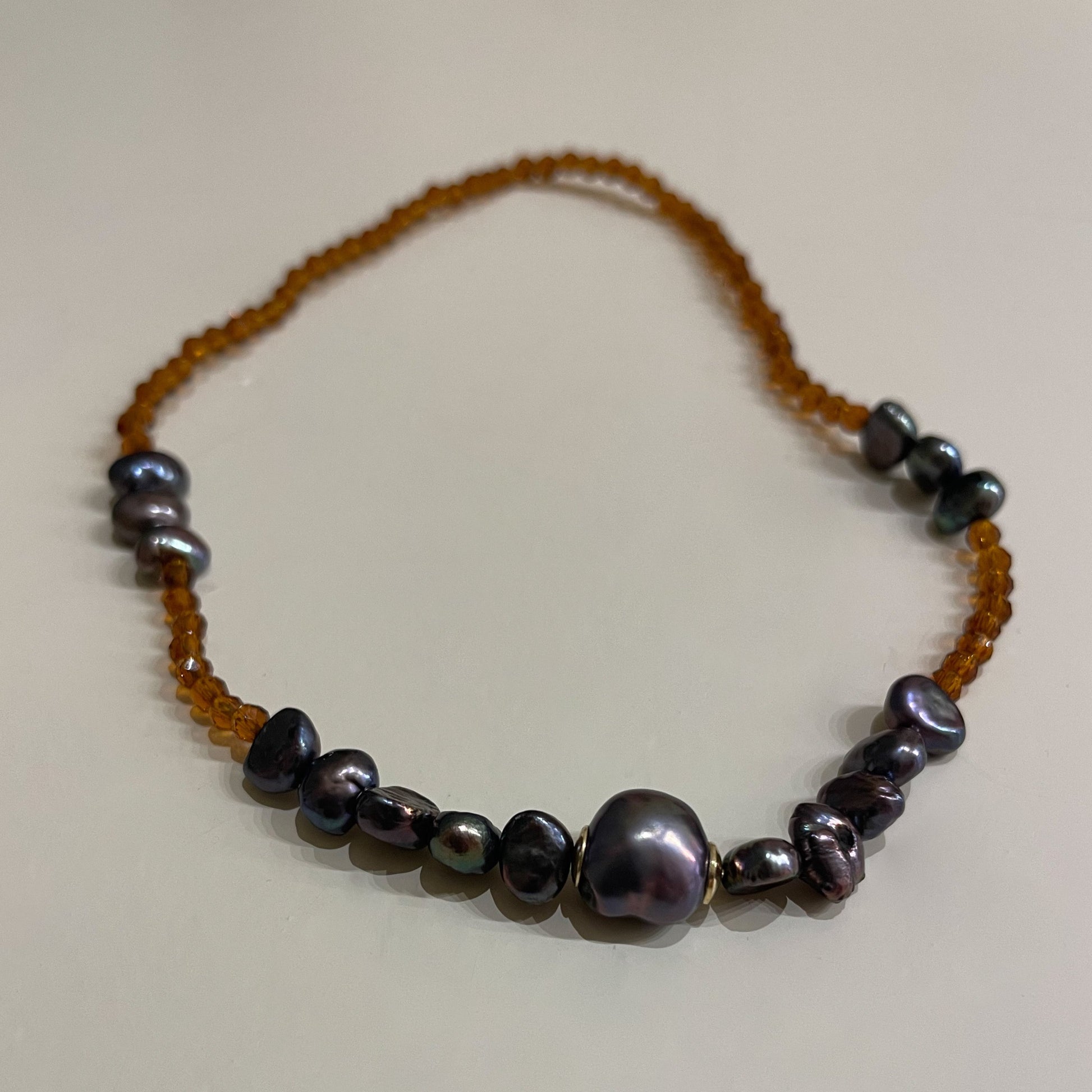Choker elastico con perle, pietre dure e centrale in oro 18kt.
