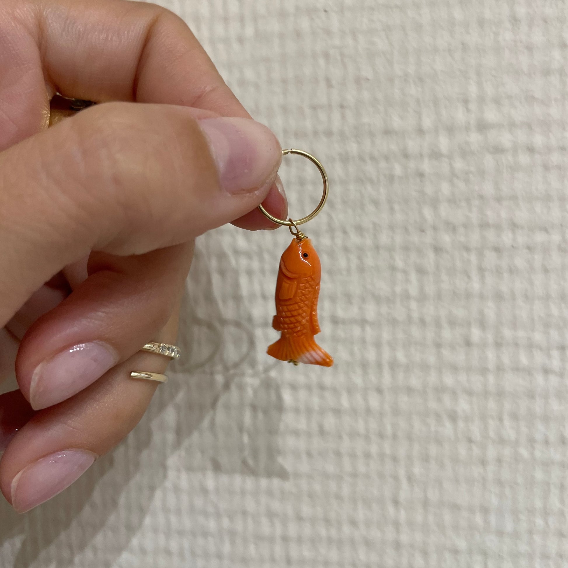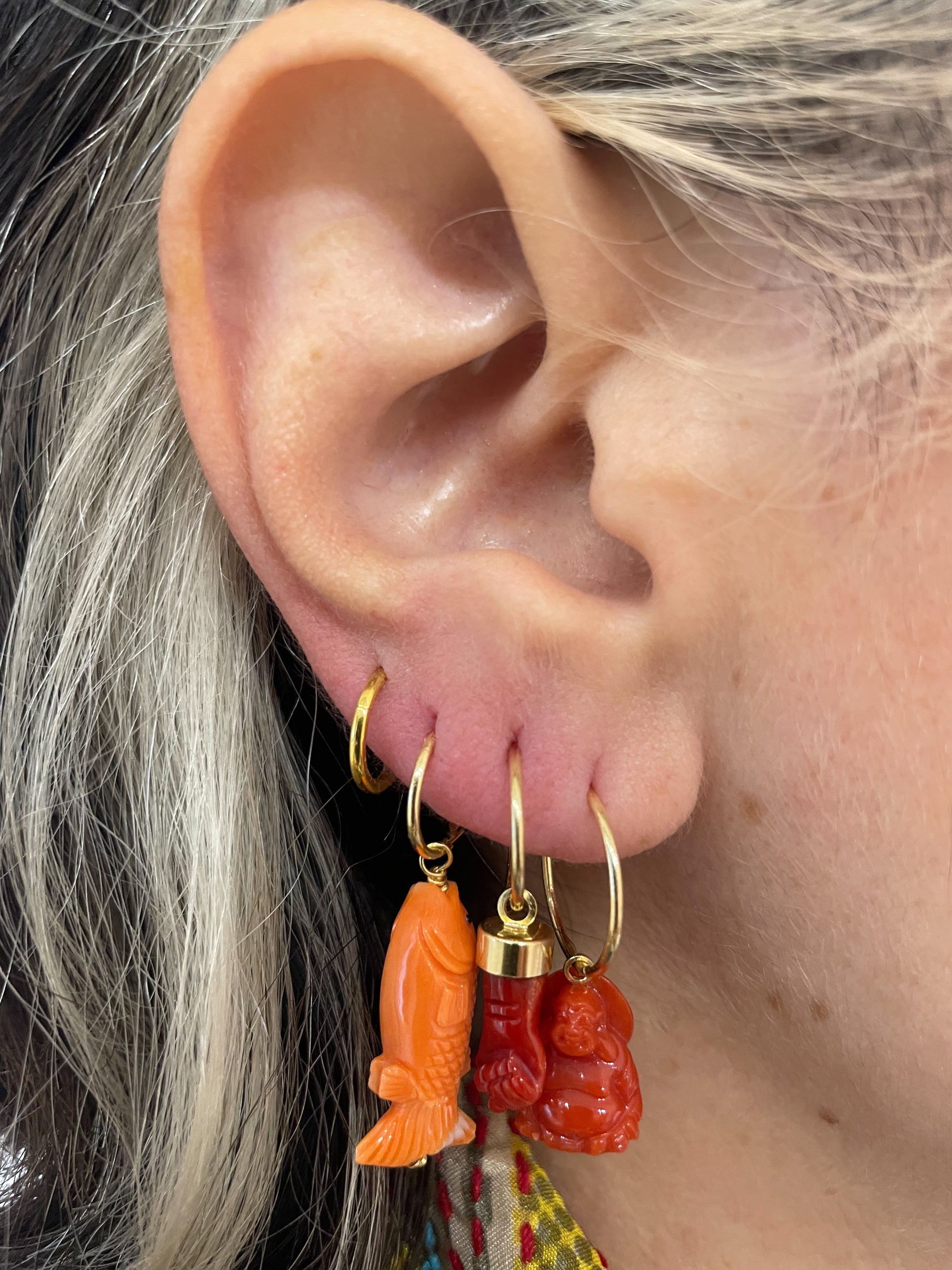 Nella seconda foto, in sequenza: cerchietto 1.5cm con buddah, cerchietto 1.2cm con mano brasiliana, cerchietto 1cm con carpa.