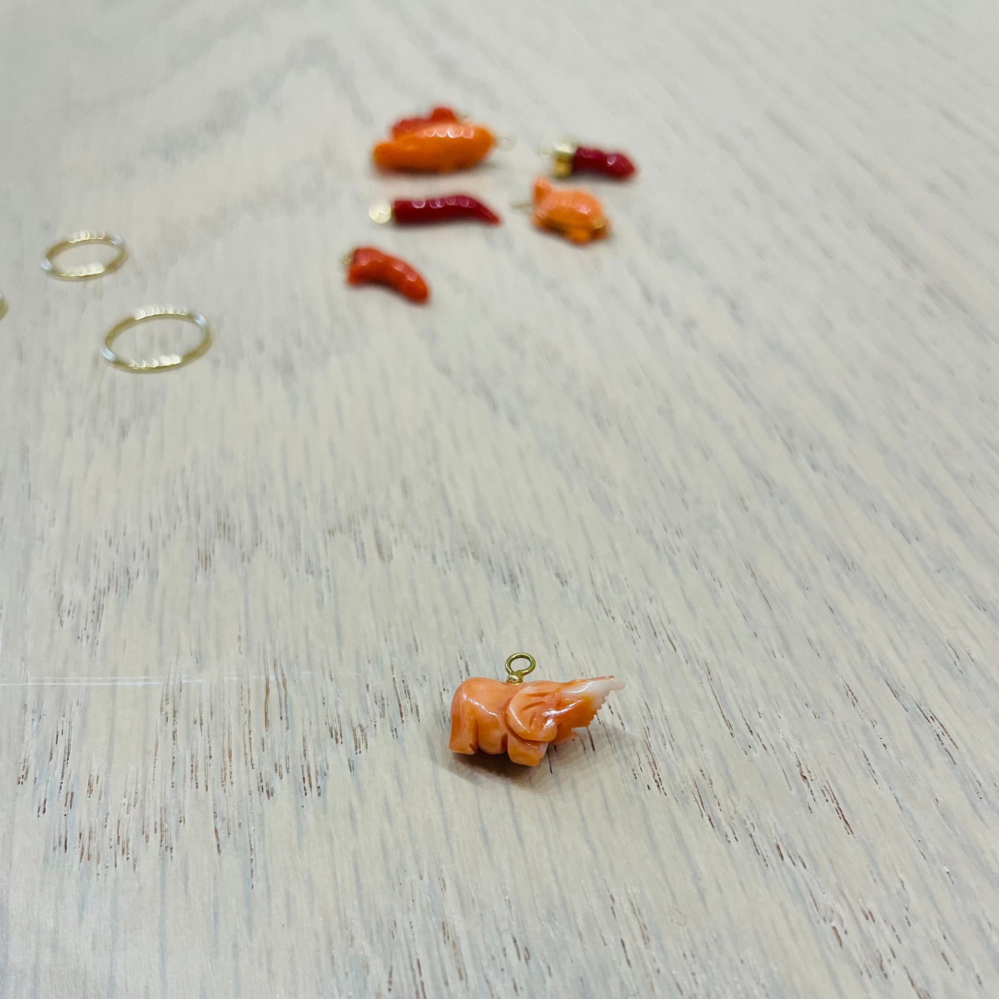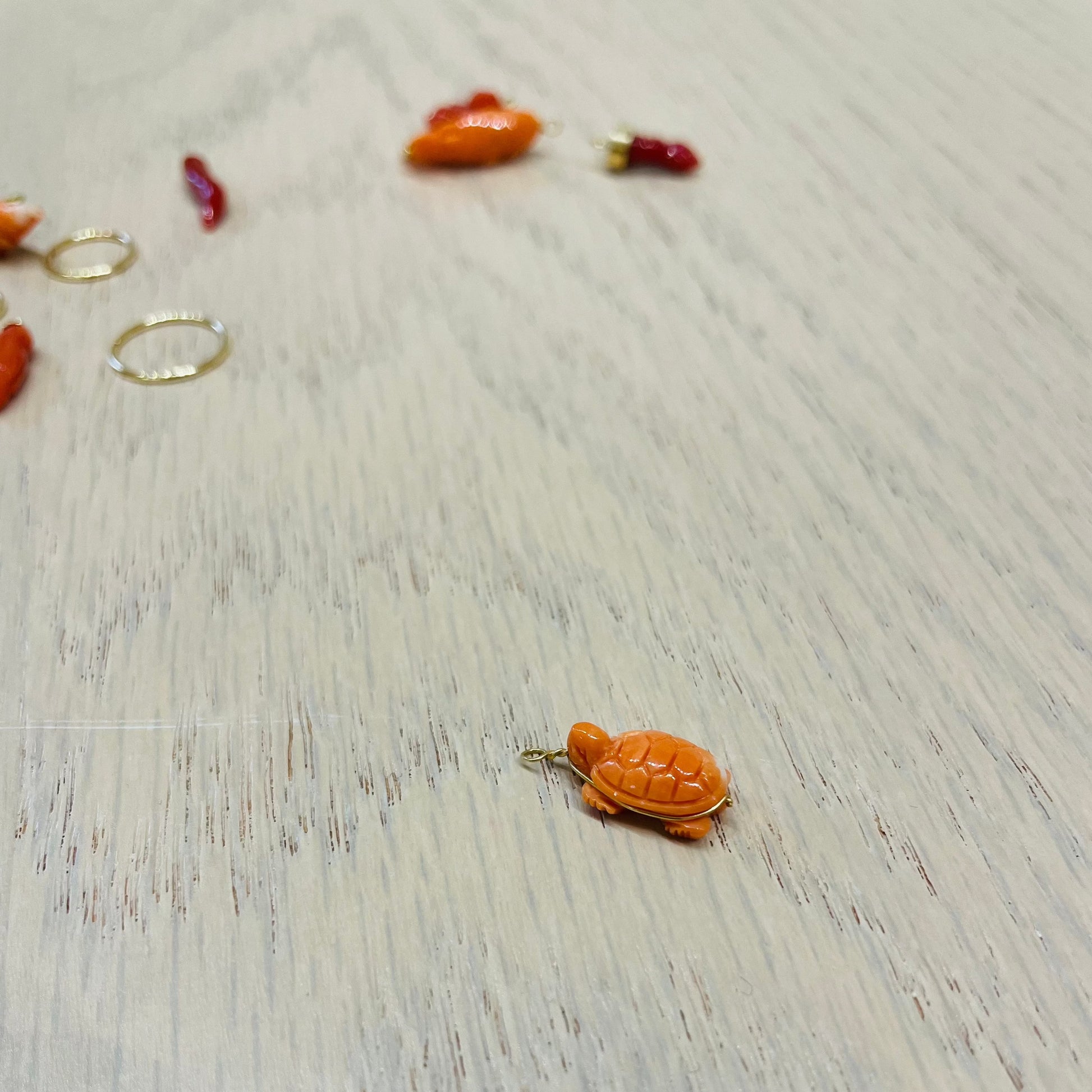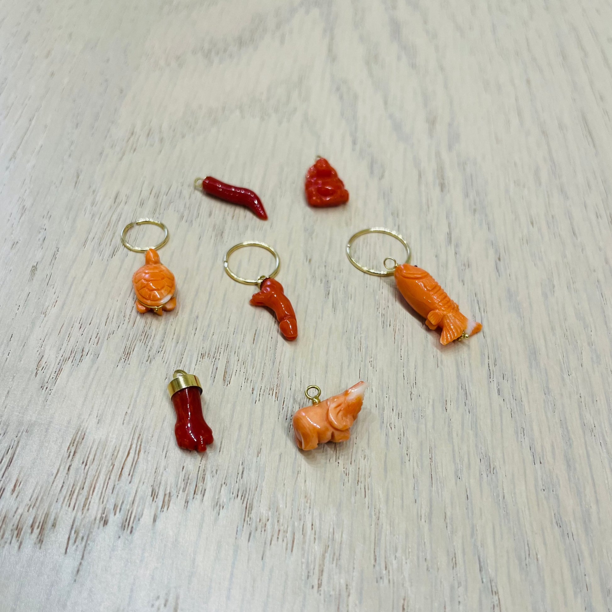 Nella prima foto, in sequenza : cerchietto 1.5cm con tartaruga, cerchietto 1.2cm con fallo, cerchietto 1cm con elefantino, cerchietto 1.5cm con cornetto.