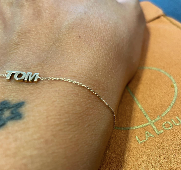 E' possibile modificare il colore dell'oro e delle pietre preziose, la finitura, la forma e la misura, in base alle tue esigenze.La dimensione in foto delle lettere è 5mm. Contatta La Lou e realizza il gioiello dei tuoi sogni.