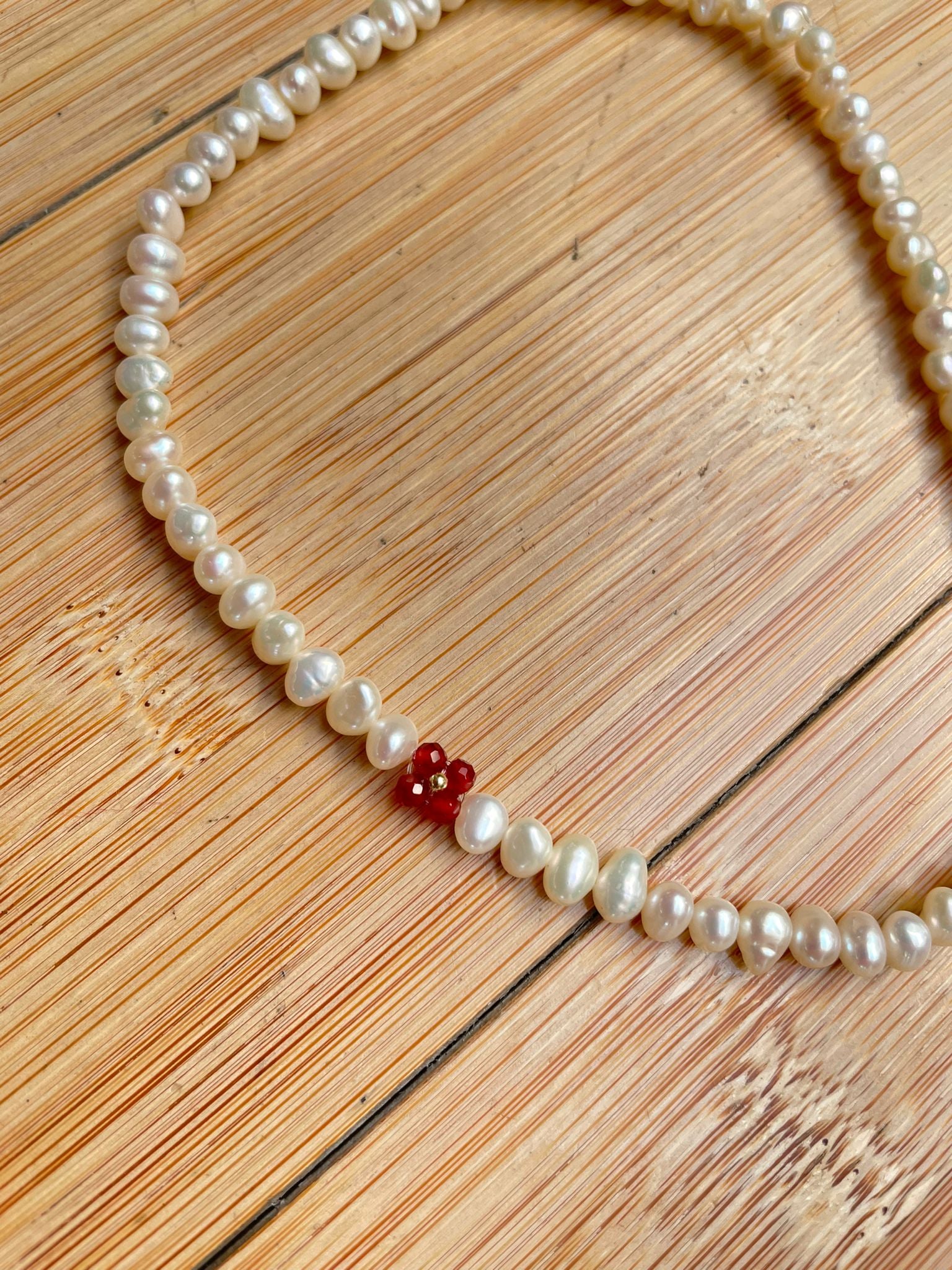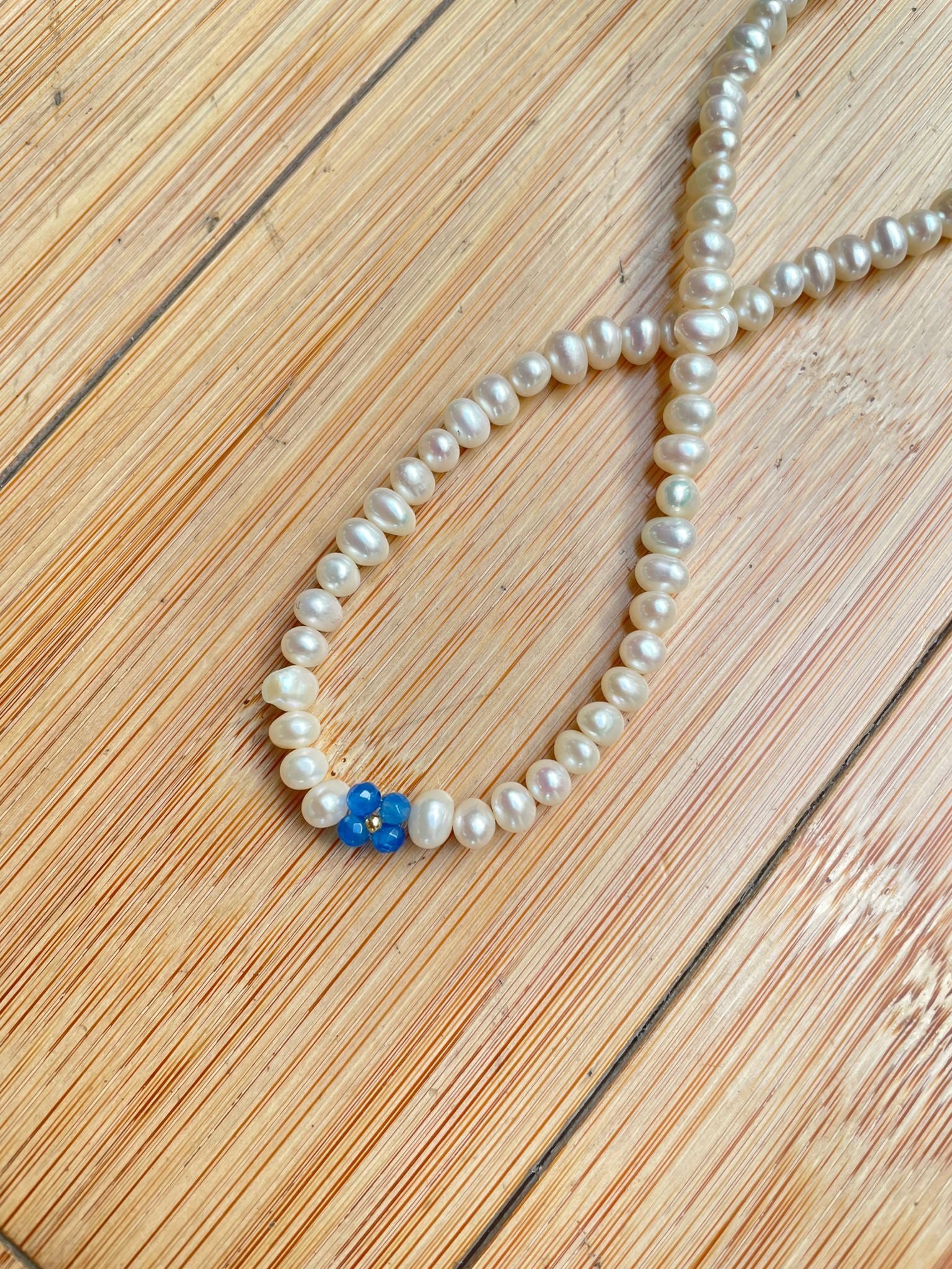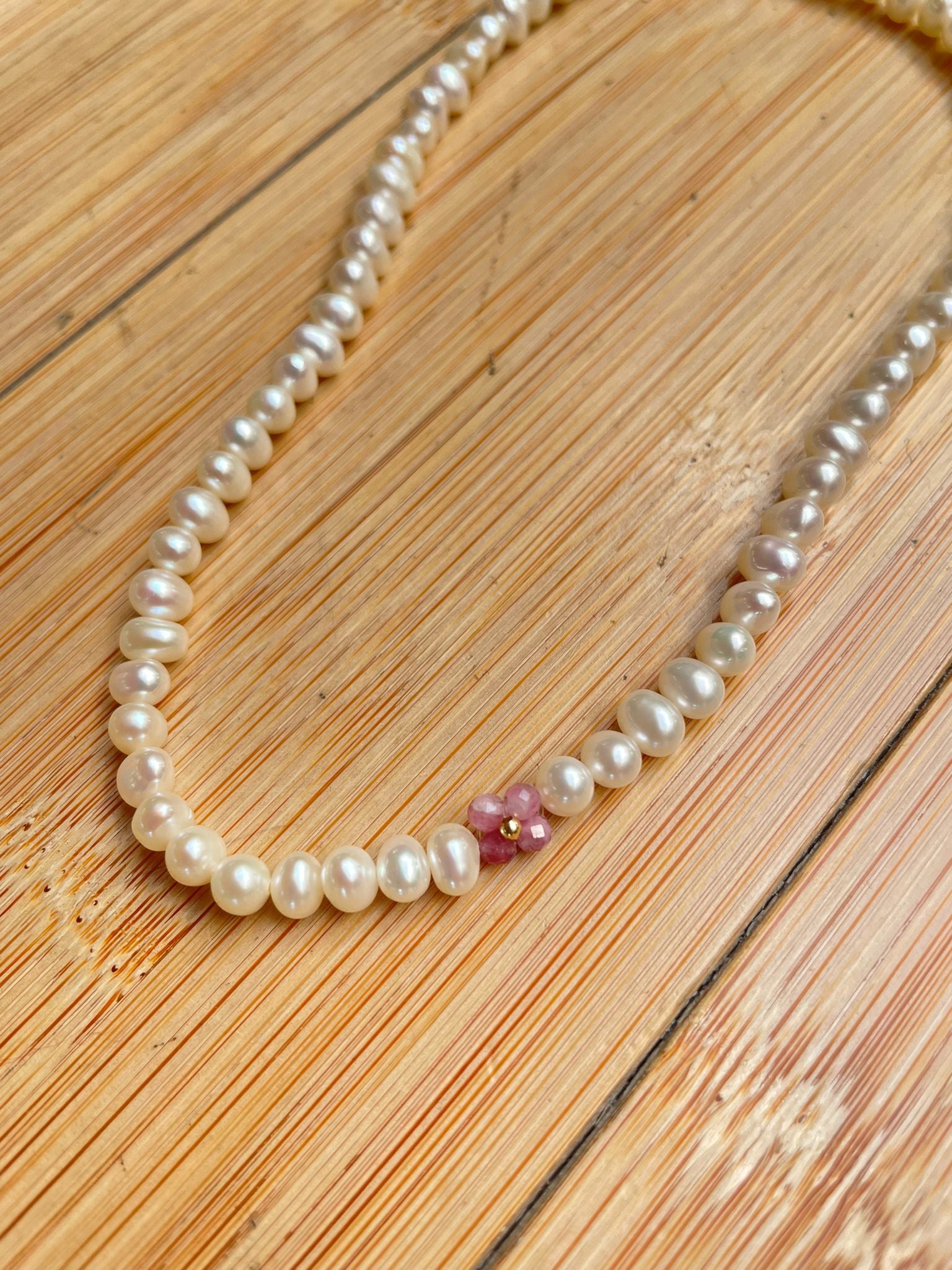 -choker elastico con perle, pietre naturali e centrale in oro 18kt