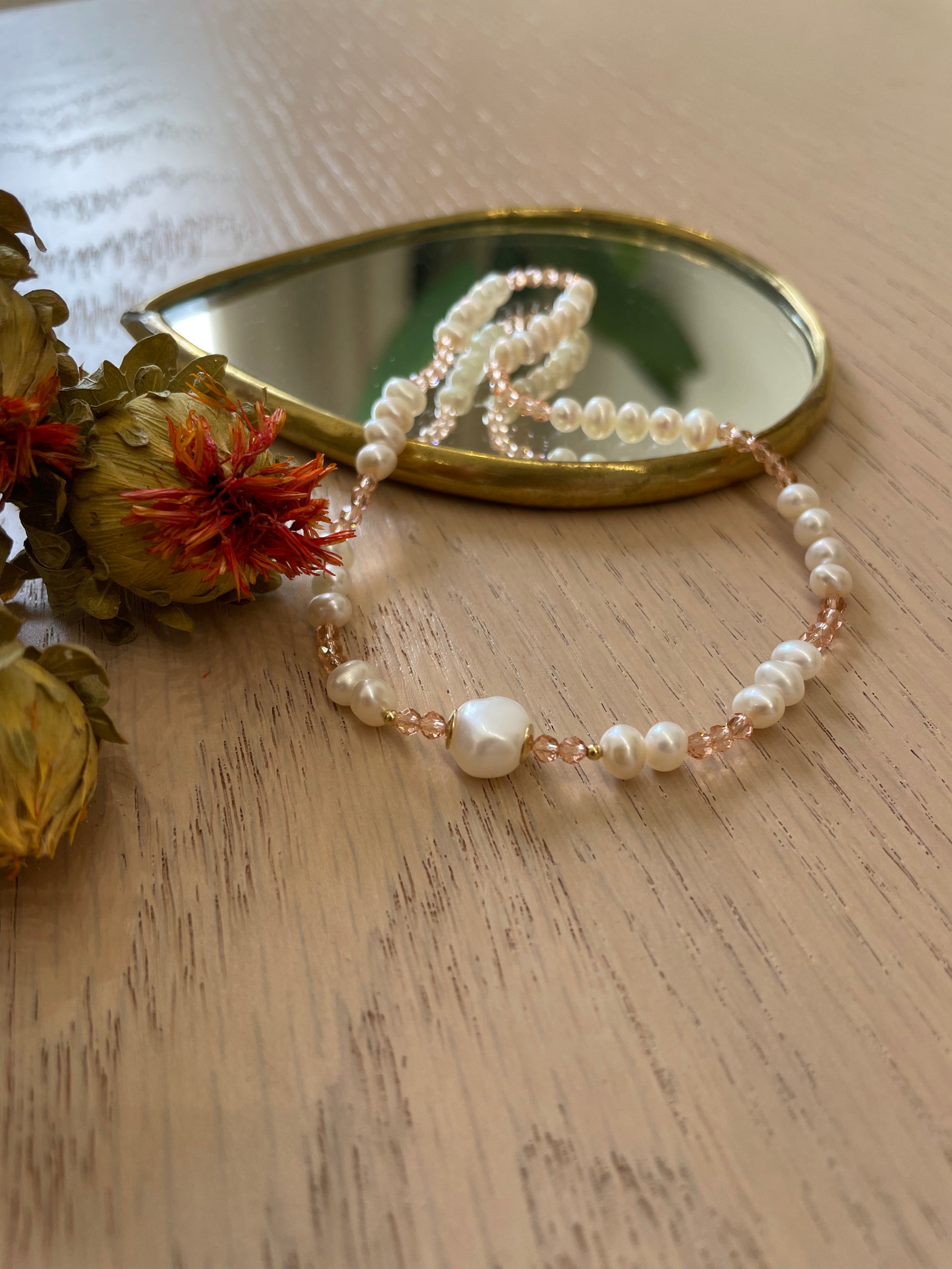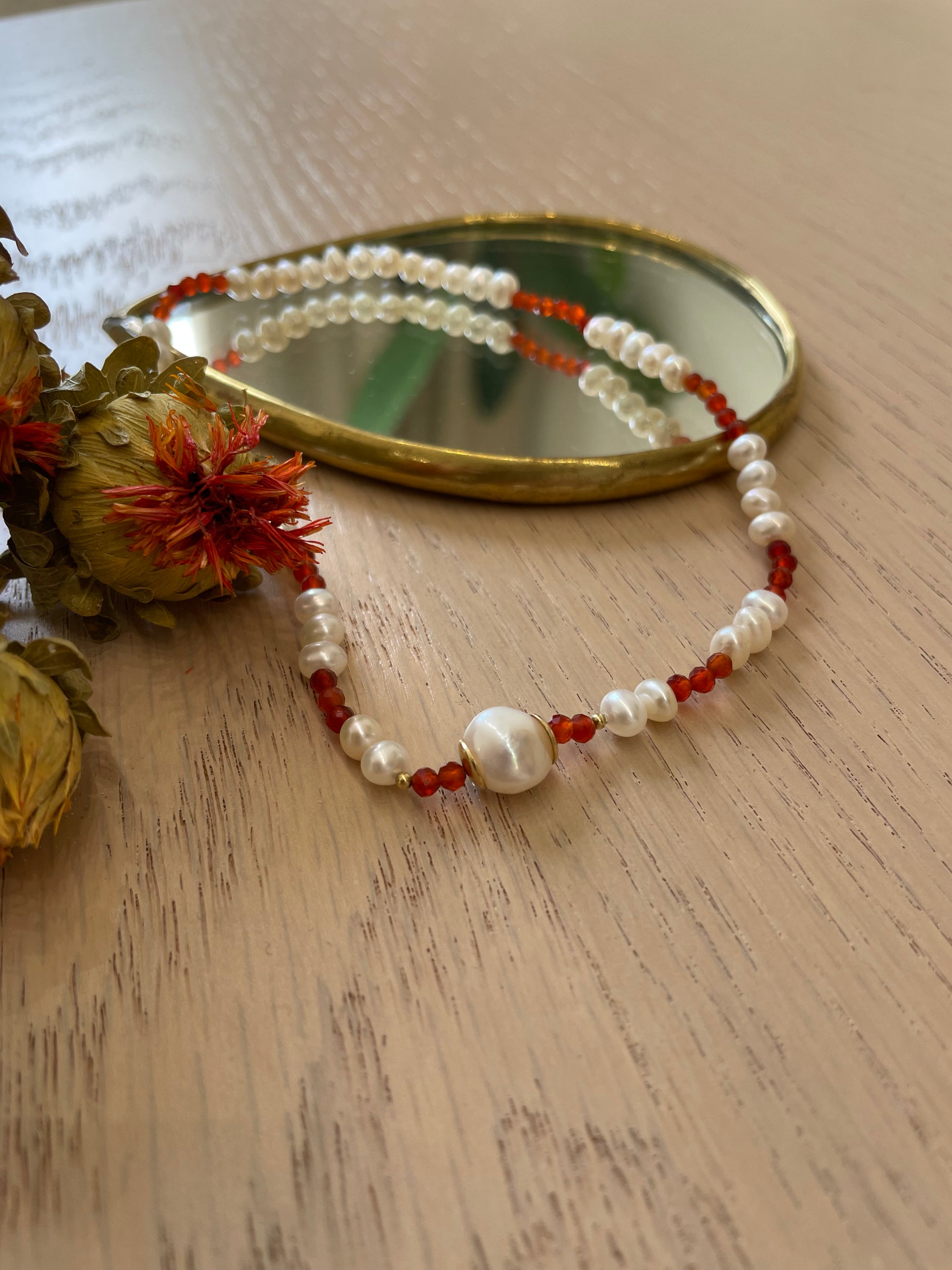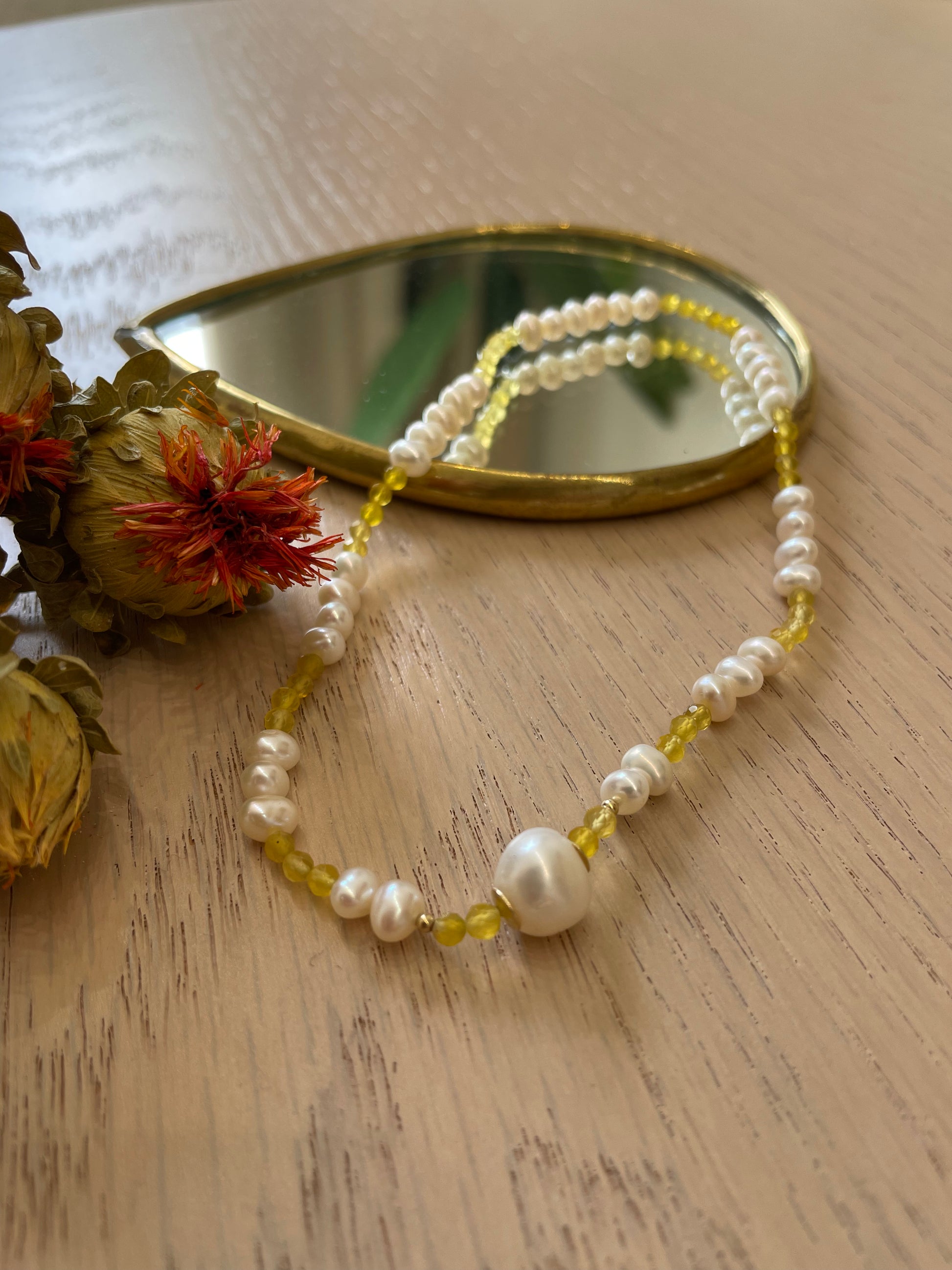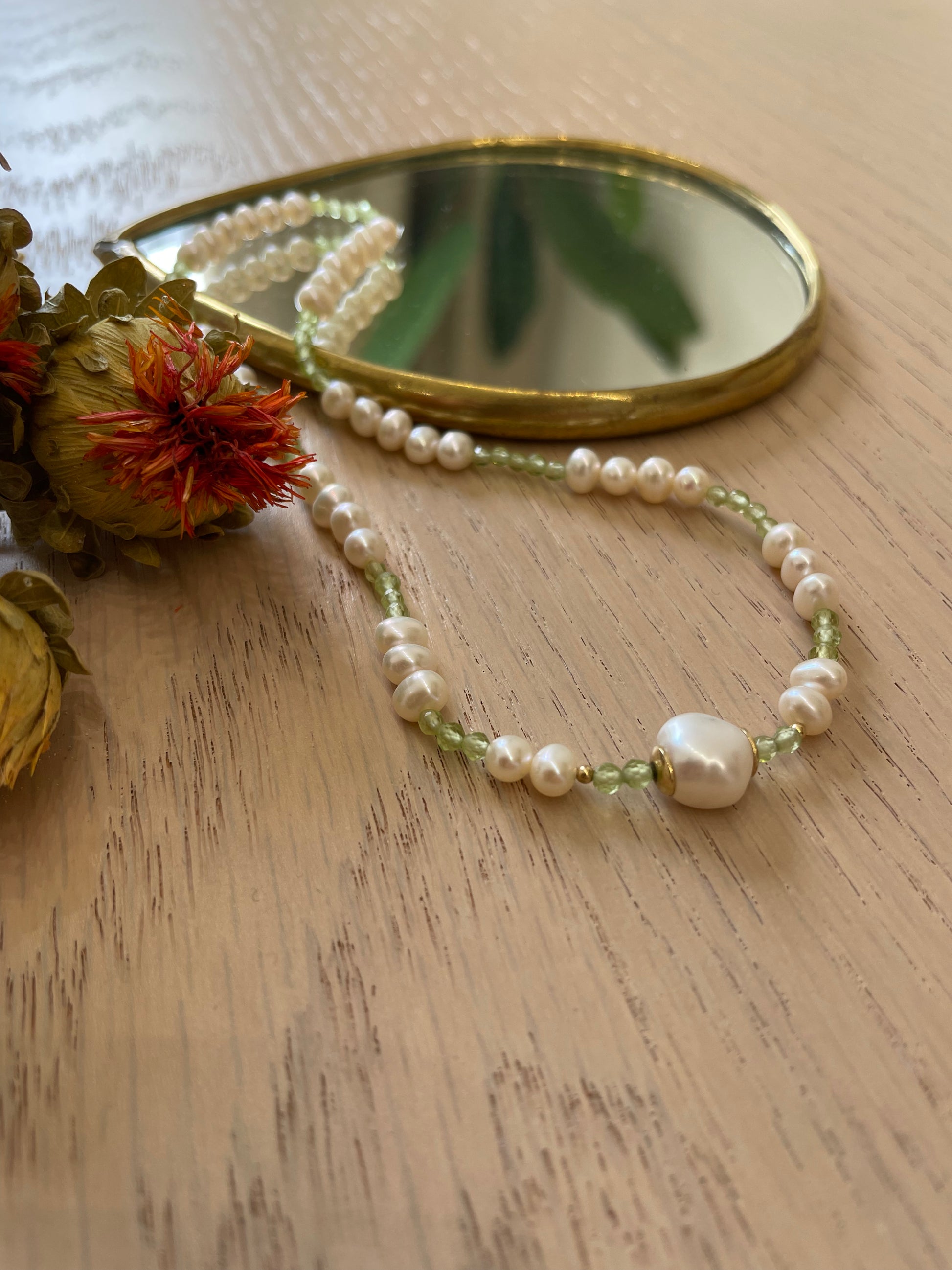 Choker elastico con perle, pietre dure e centrale in oro 18kt.