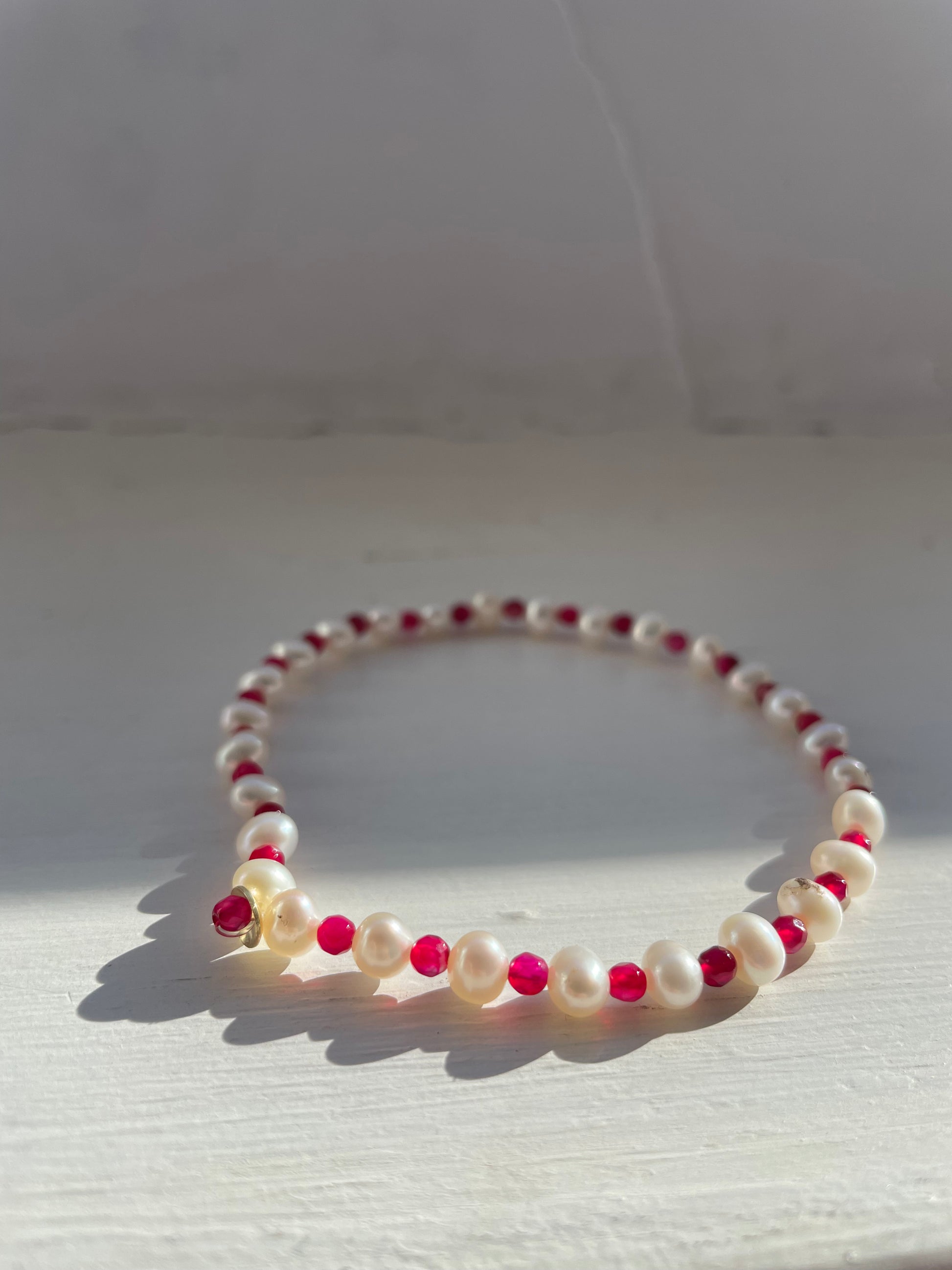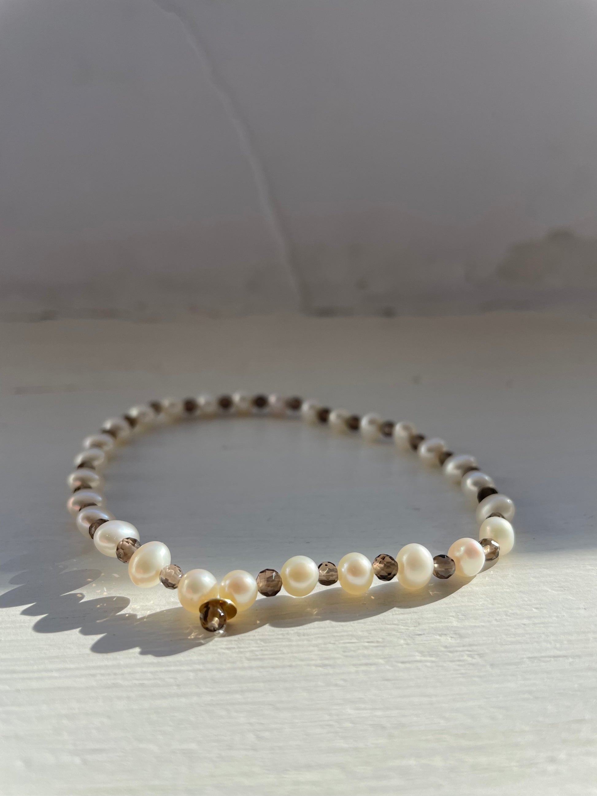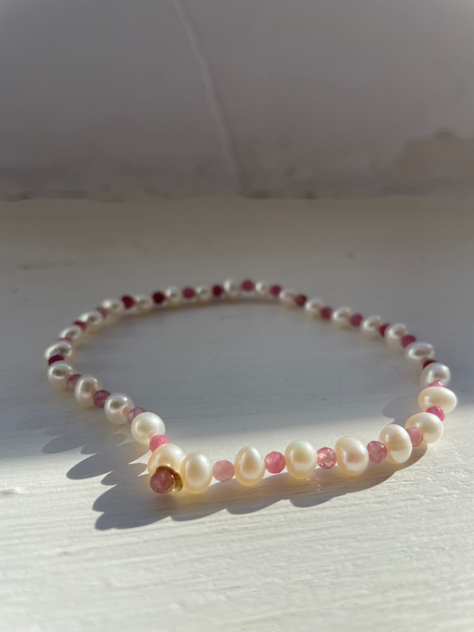-cavigliera elastica con perle, pietre naturali e centrale in oro 18kt