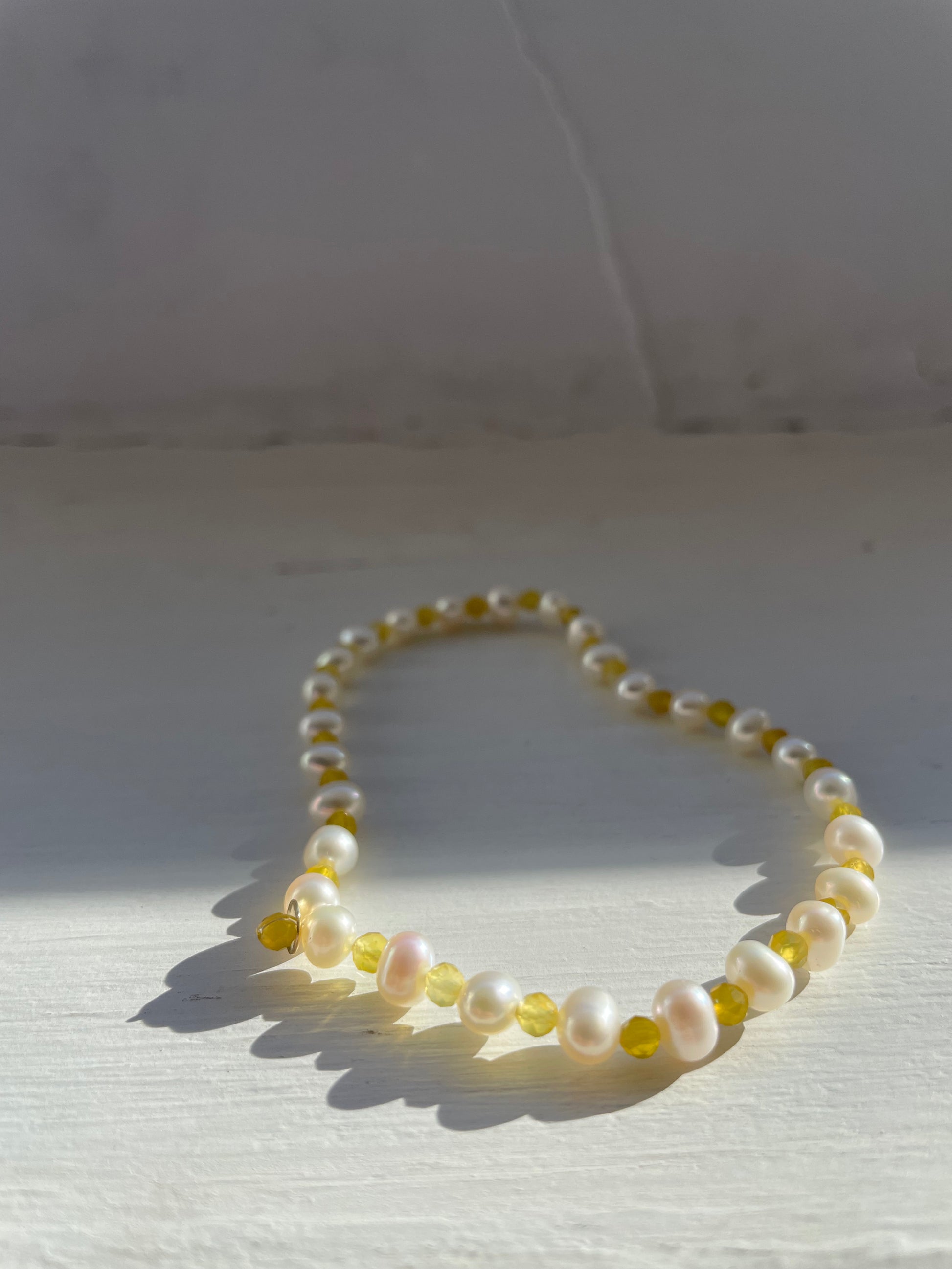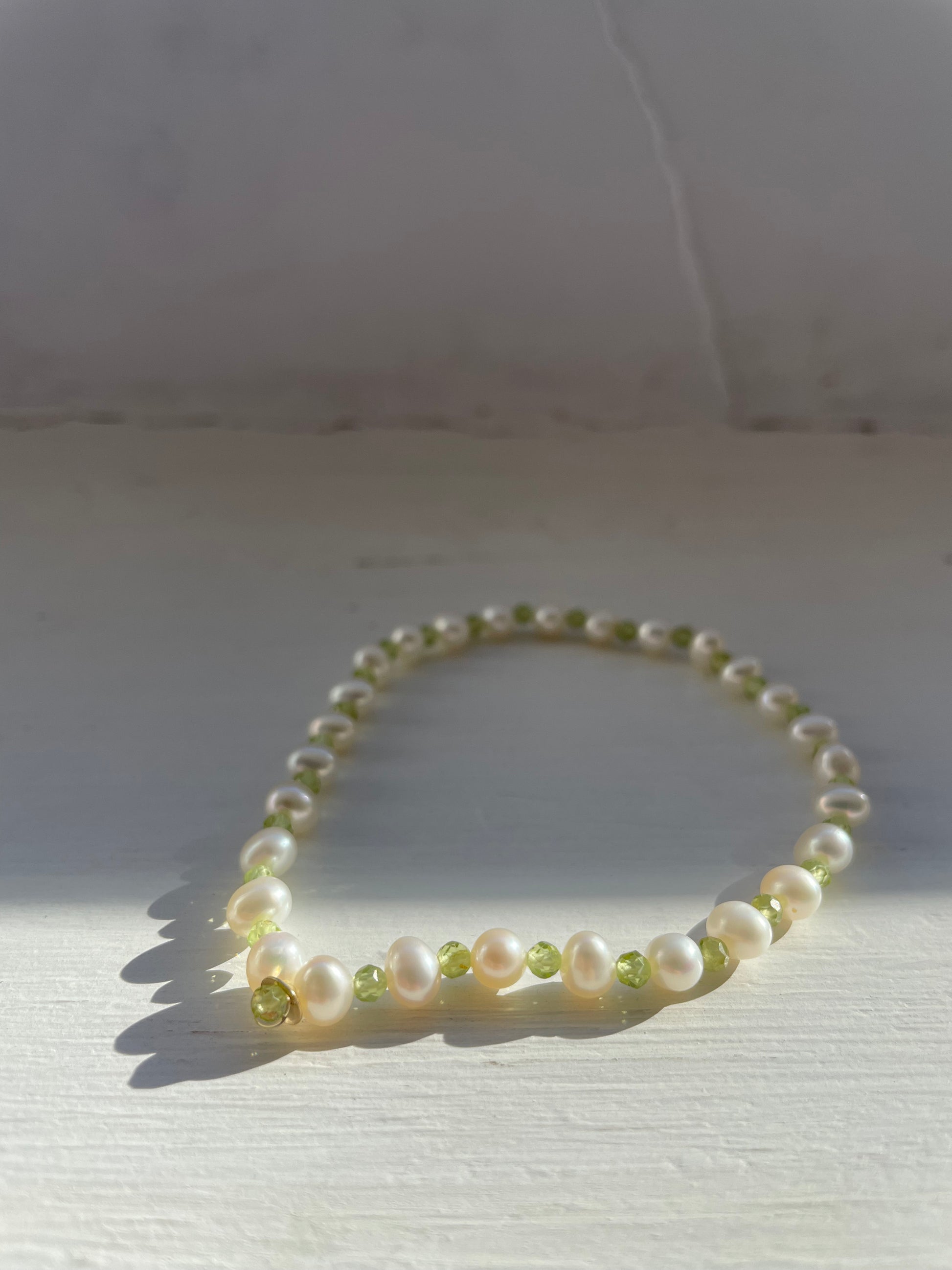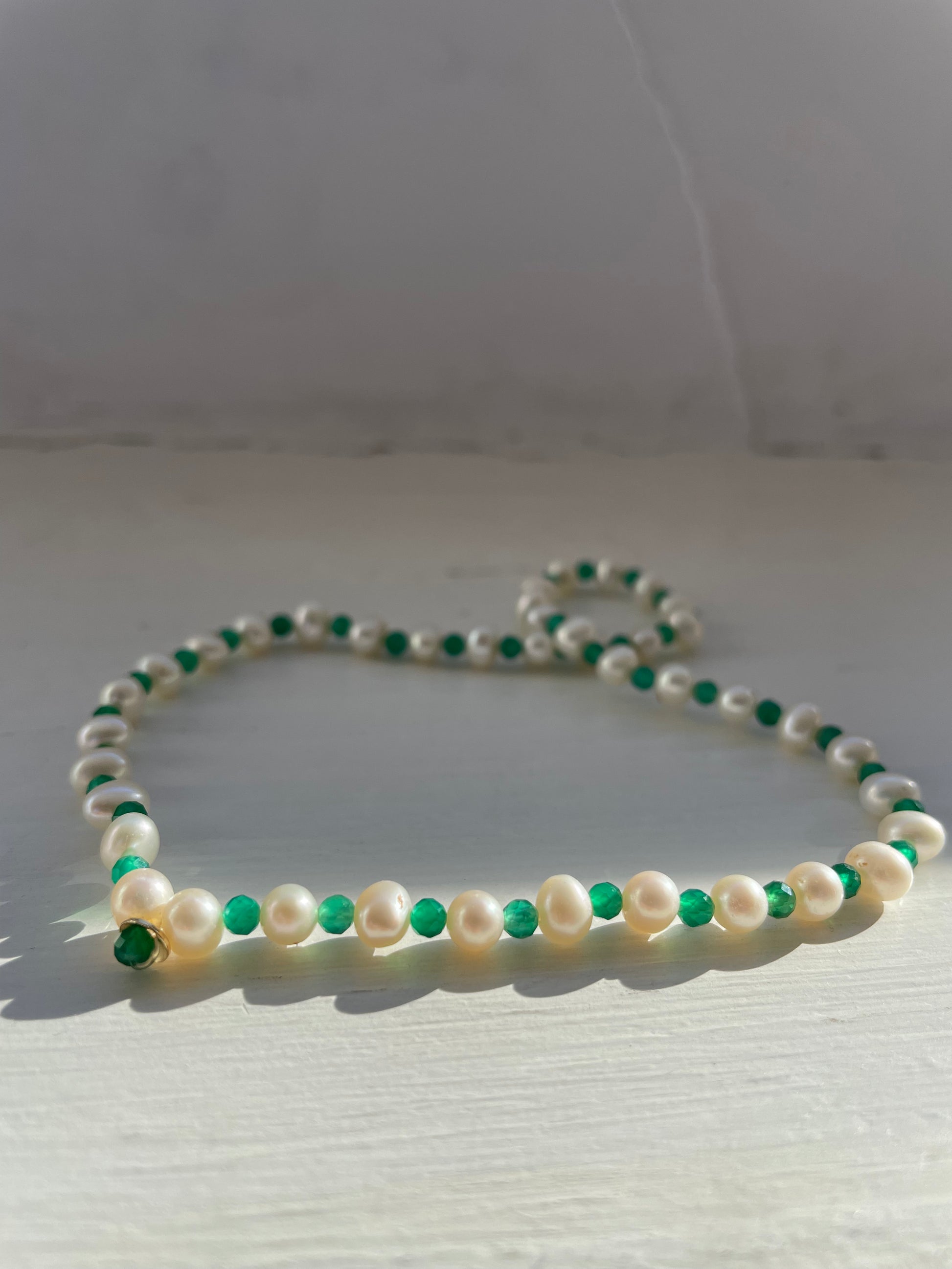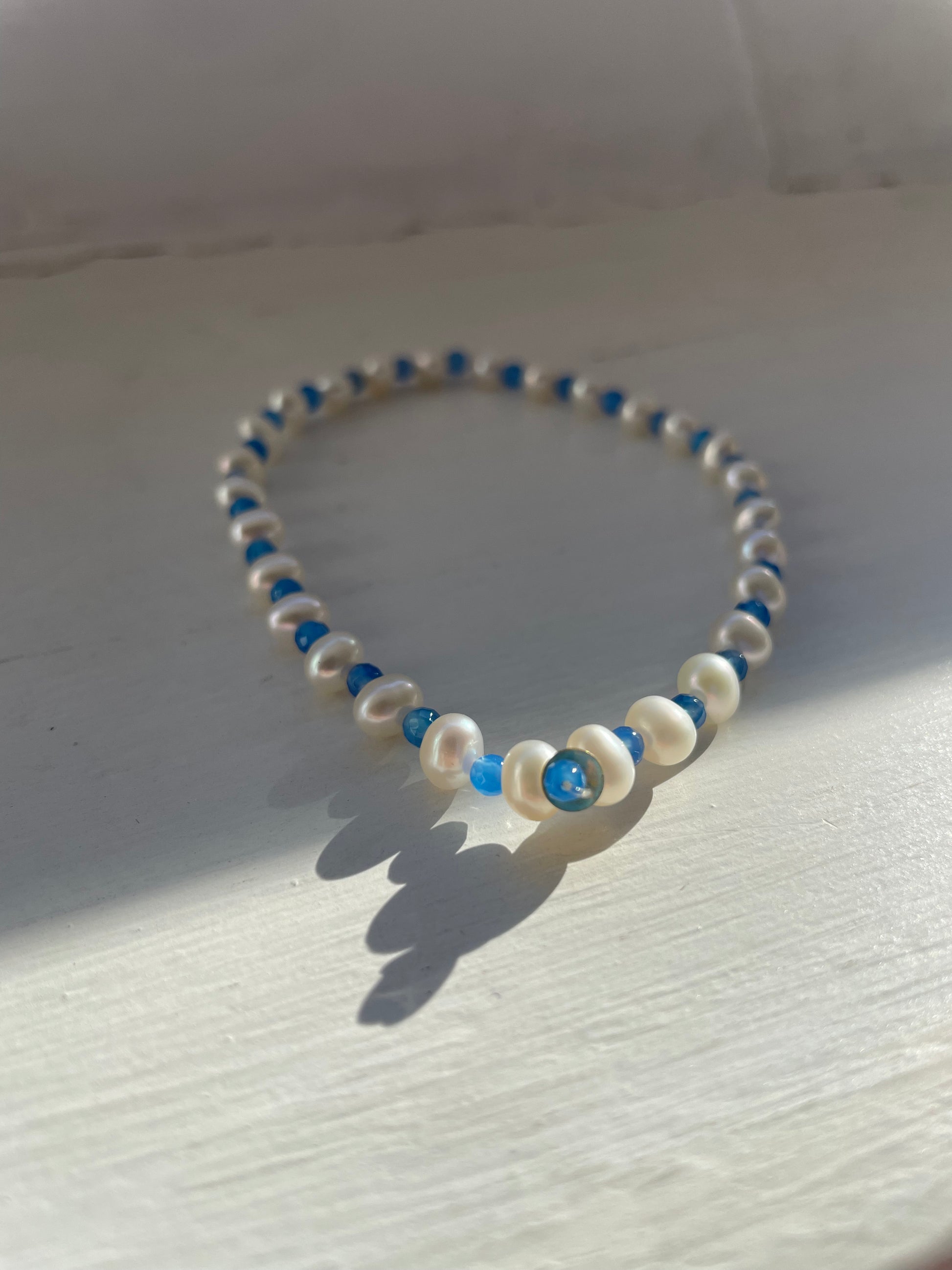 -cavigliera elastica con perle, pietre naturali e centrale in oro 18kt