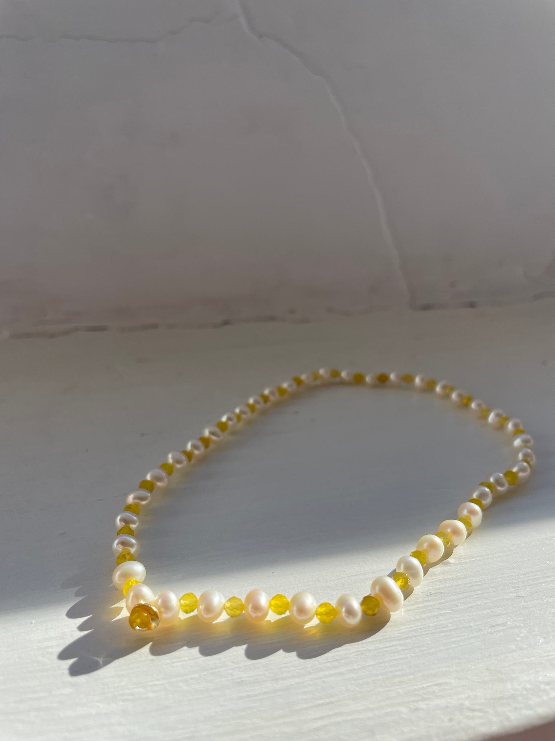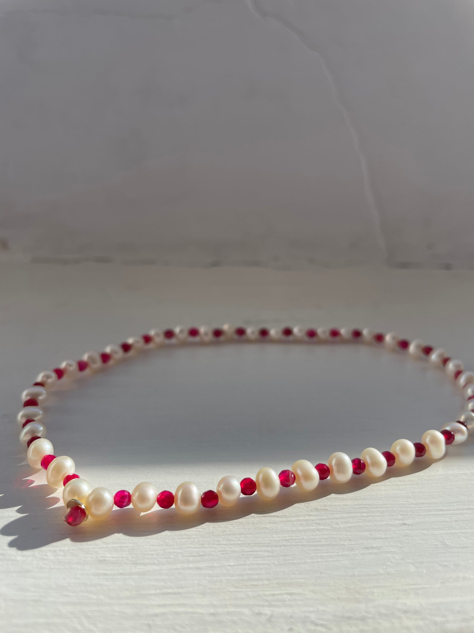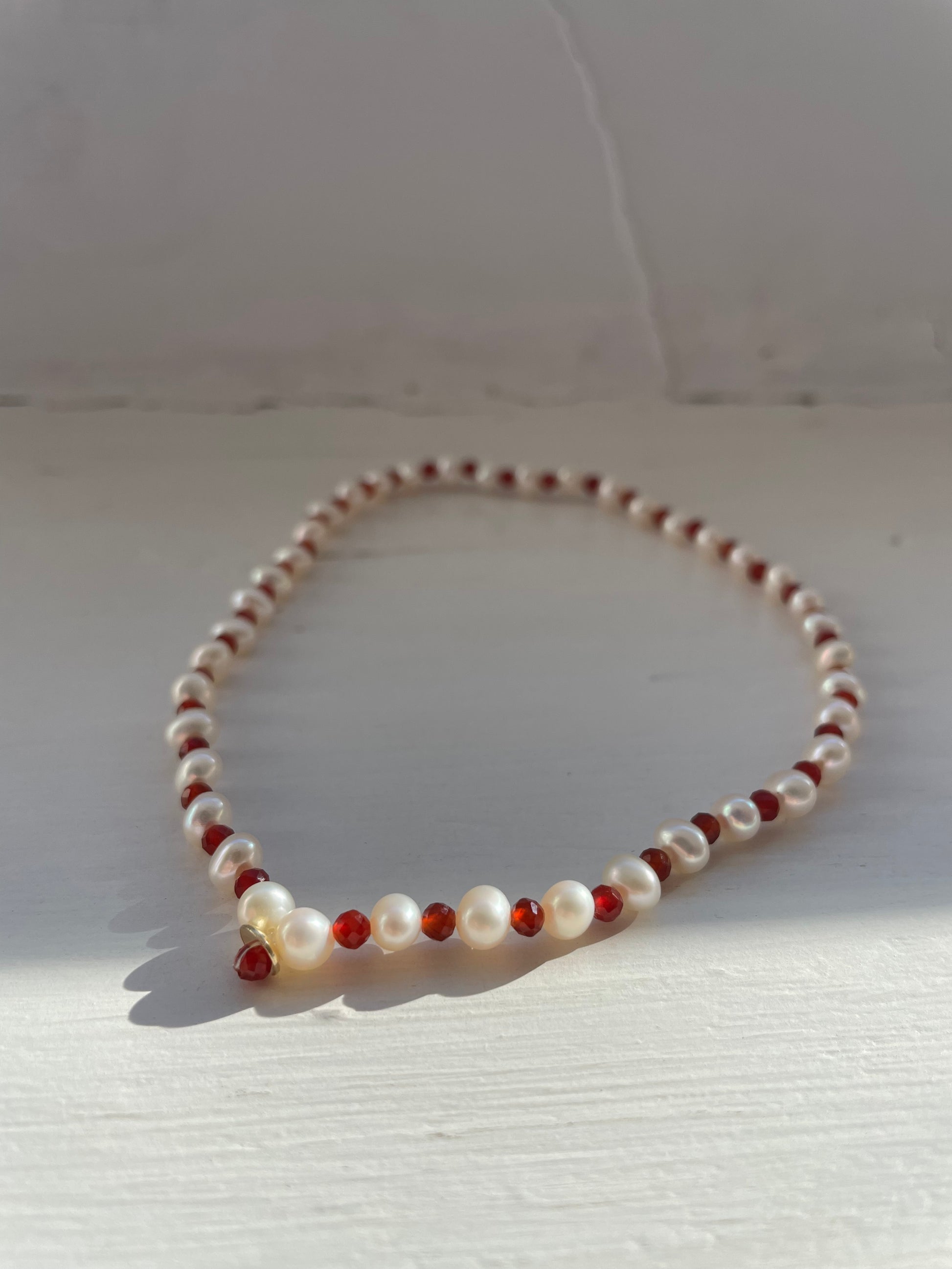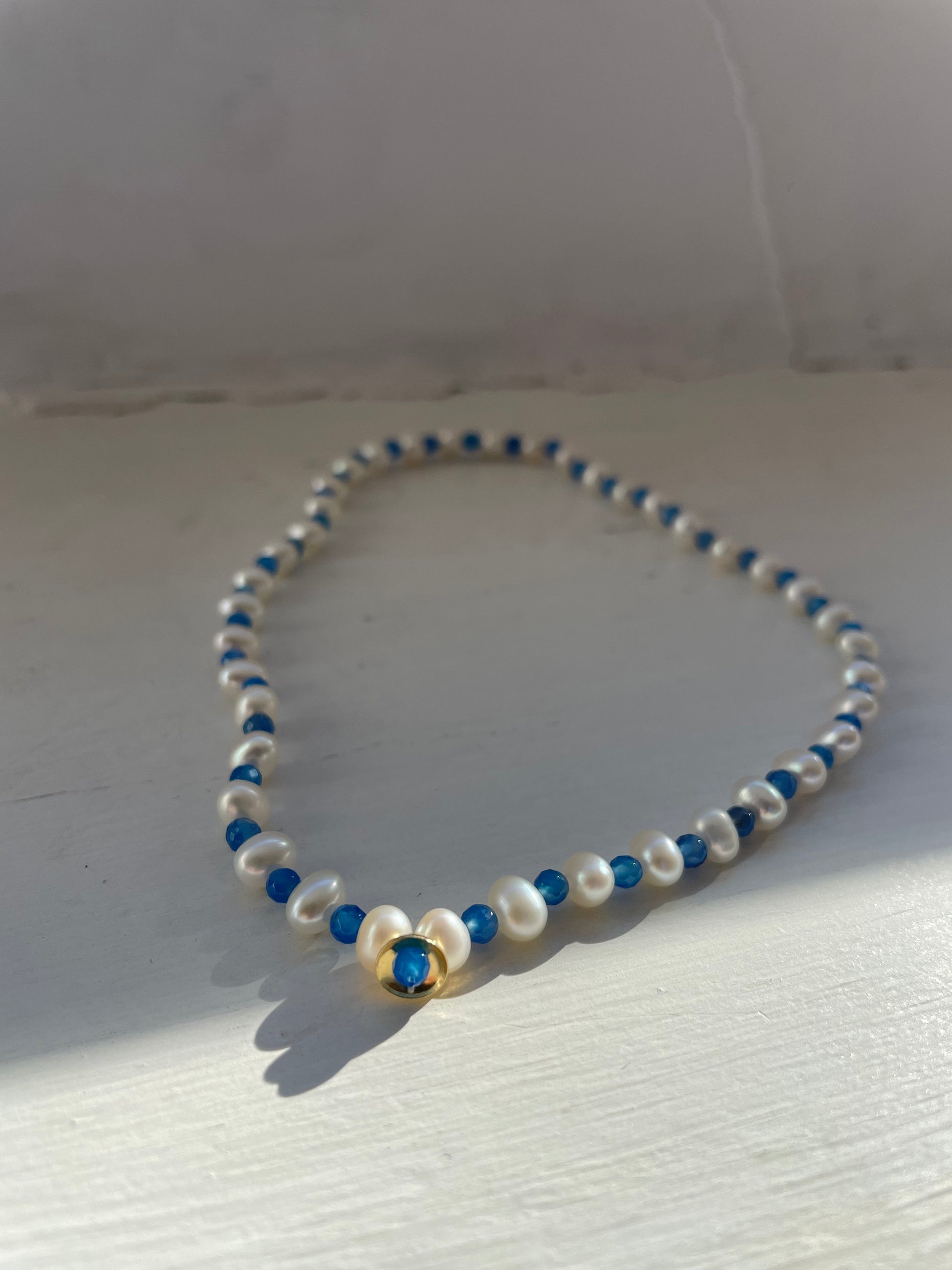 -choker elastico con perle, pietre naturali e centrale in oro 18kt