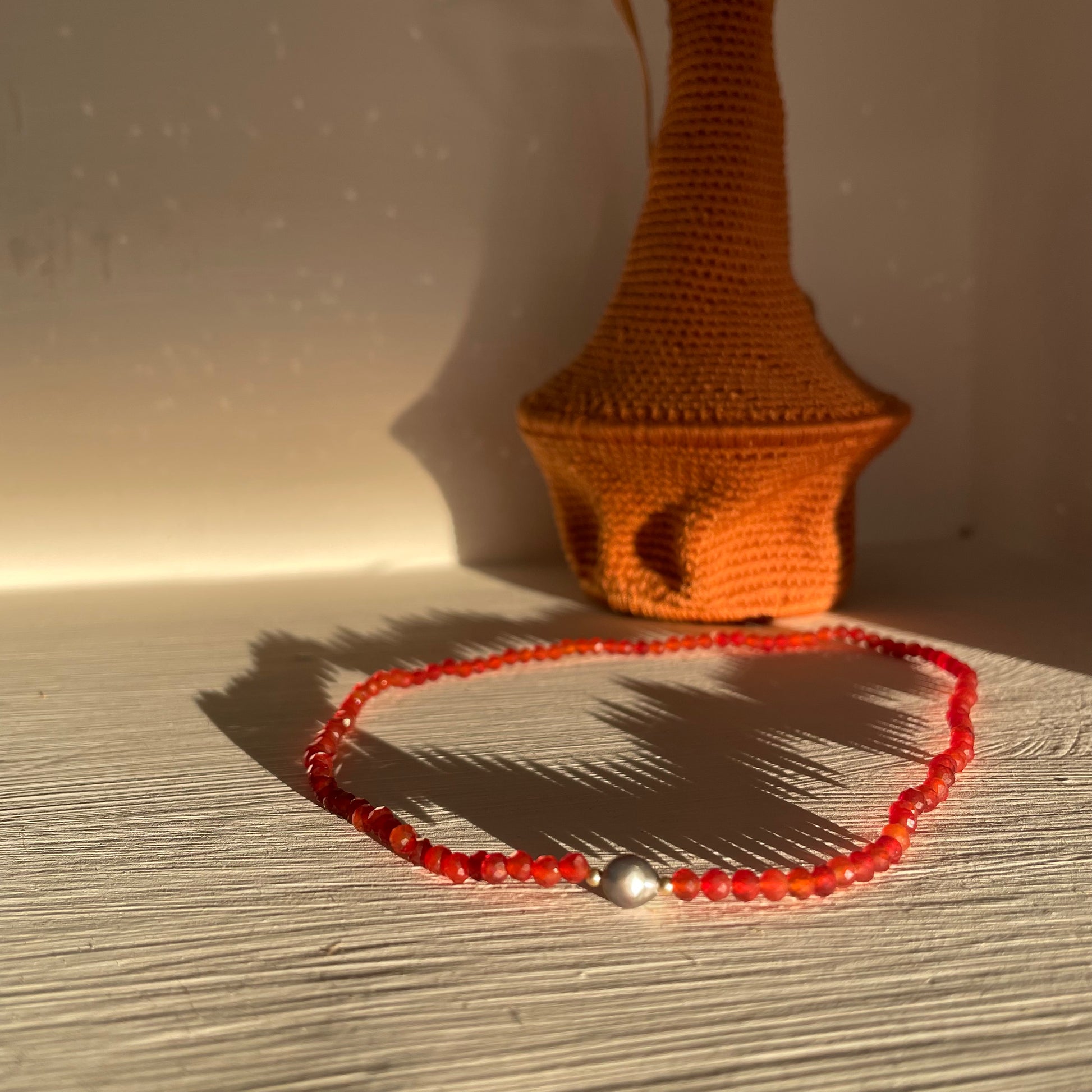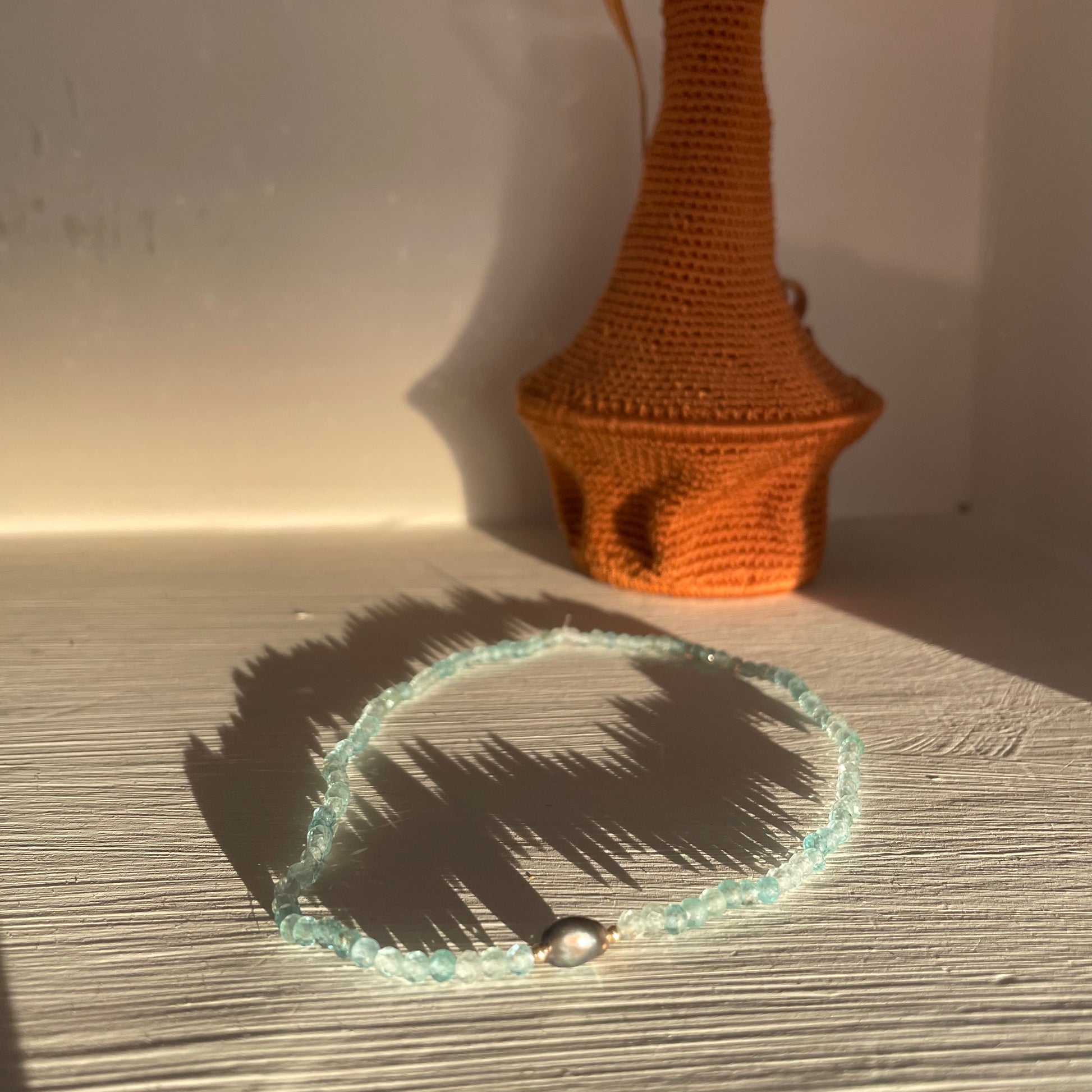 -choker elastico con pietre naturali e centrale in oro giallo 18kt e perla barocca