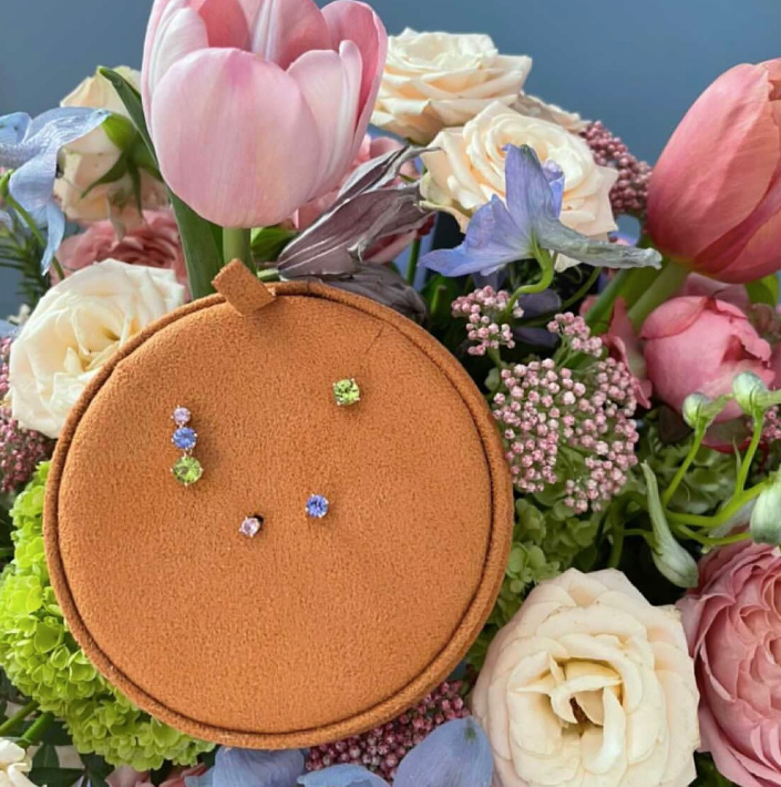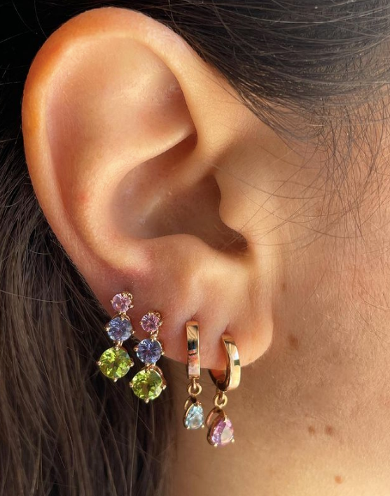 Triple - orecchini in oro 18kt e pietre preziose